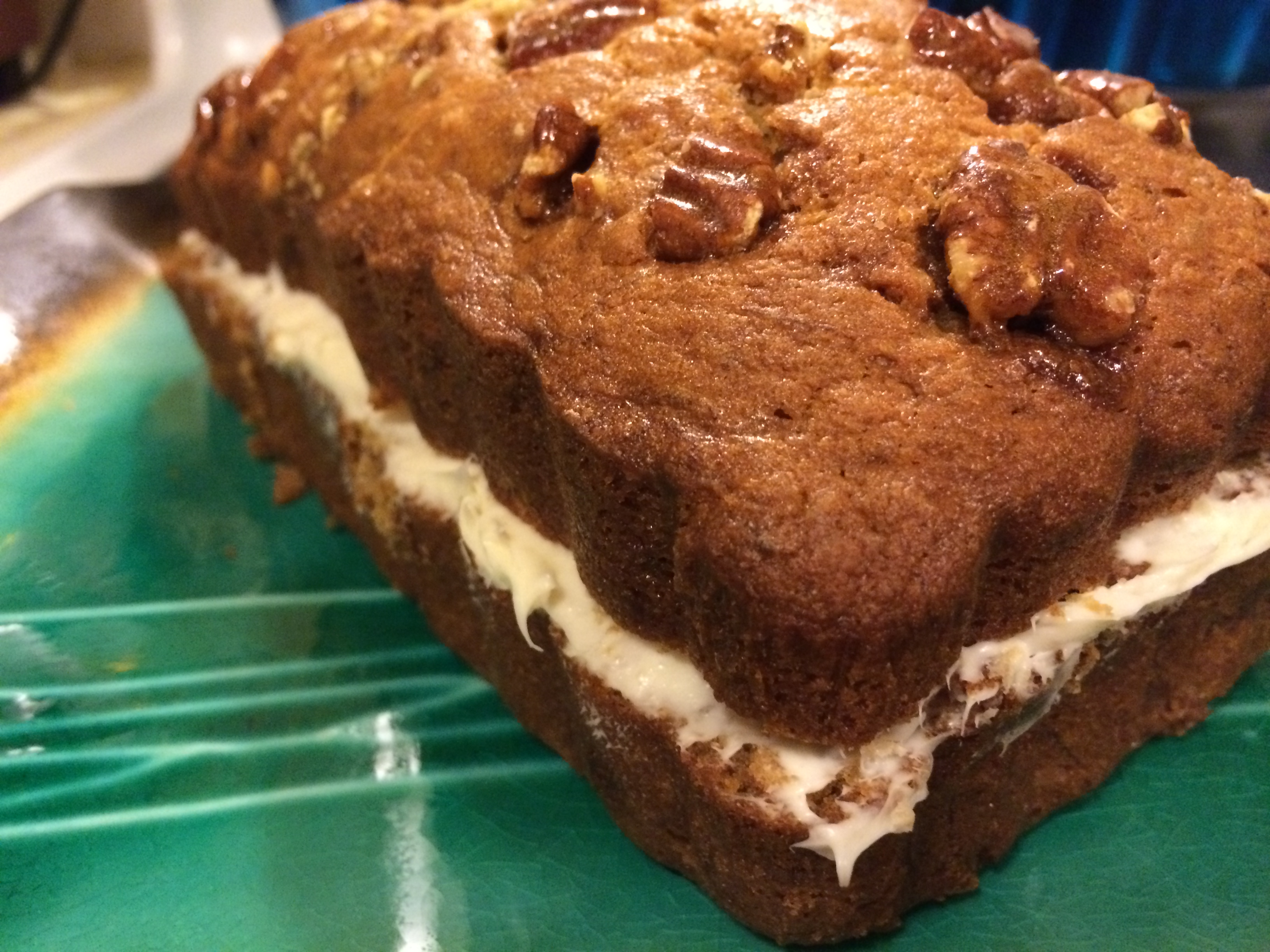 19. Spread cream cheese frosting evenly over bottom half. (Recipe below)